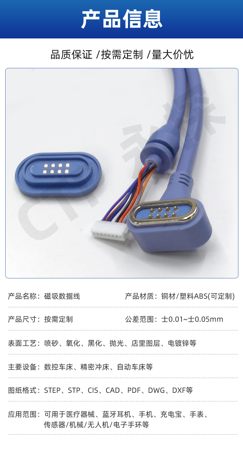 永探 8Pin磁吸pogopin数据线智能穿戴医疗设备专用磁吸充电线